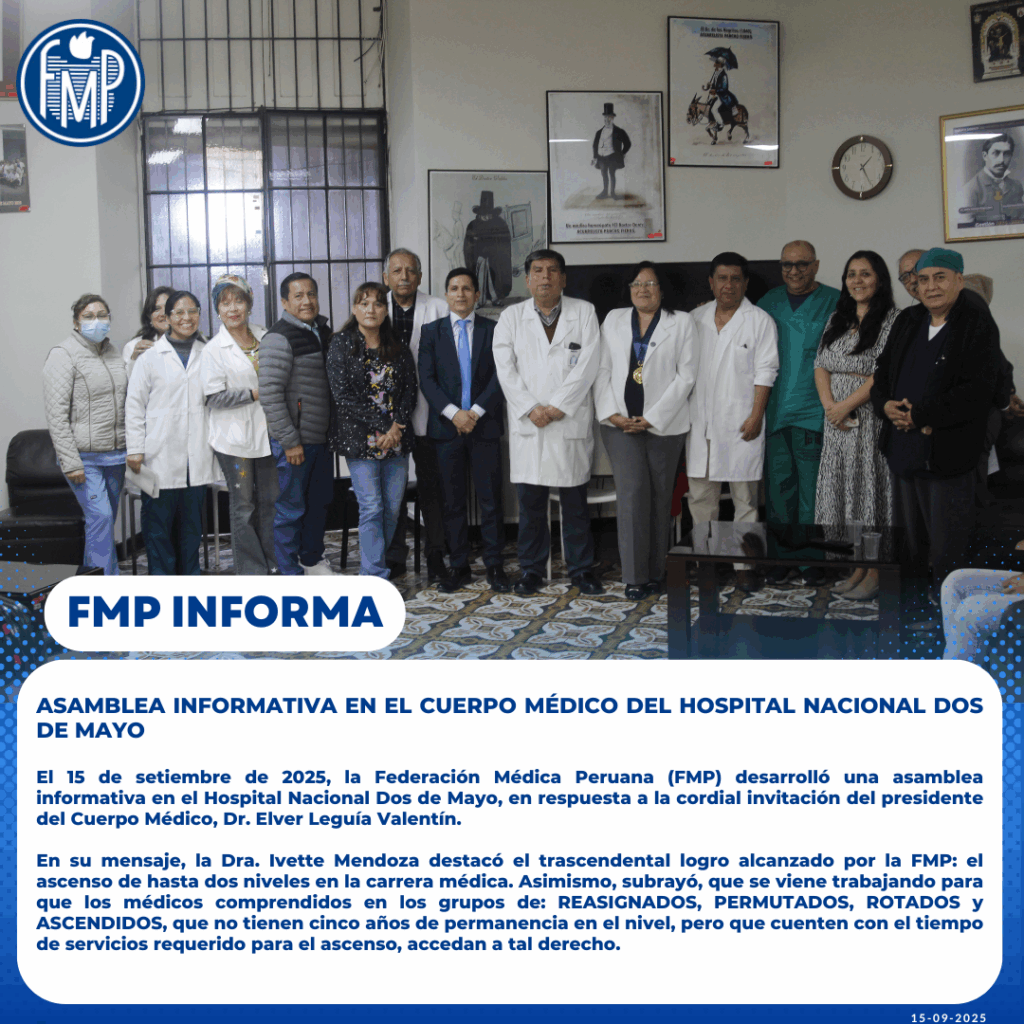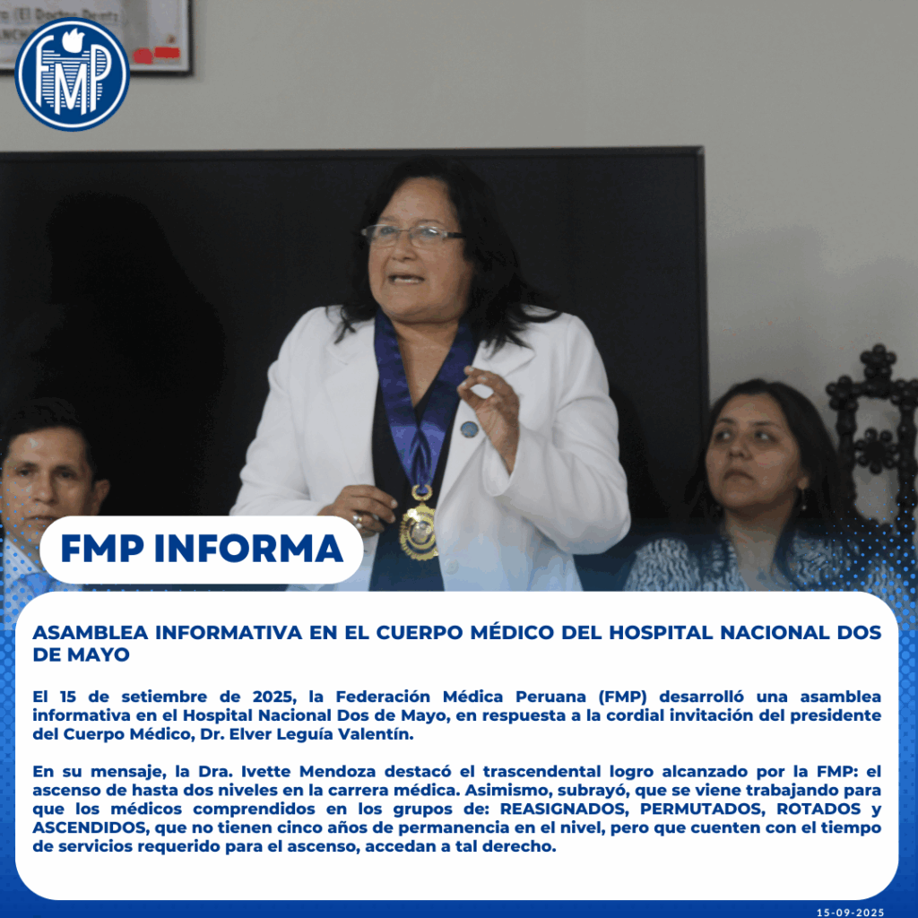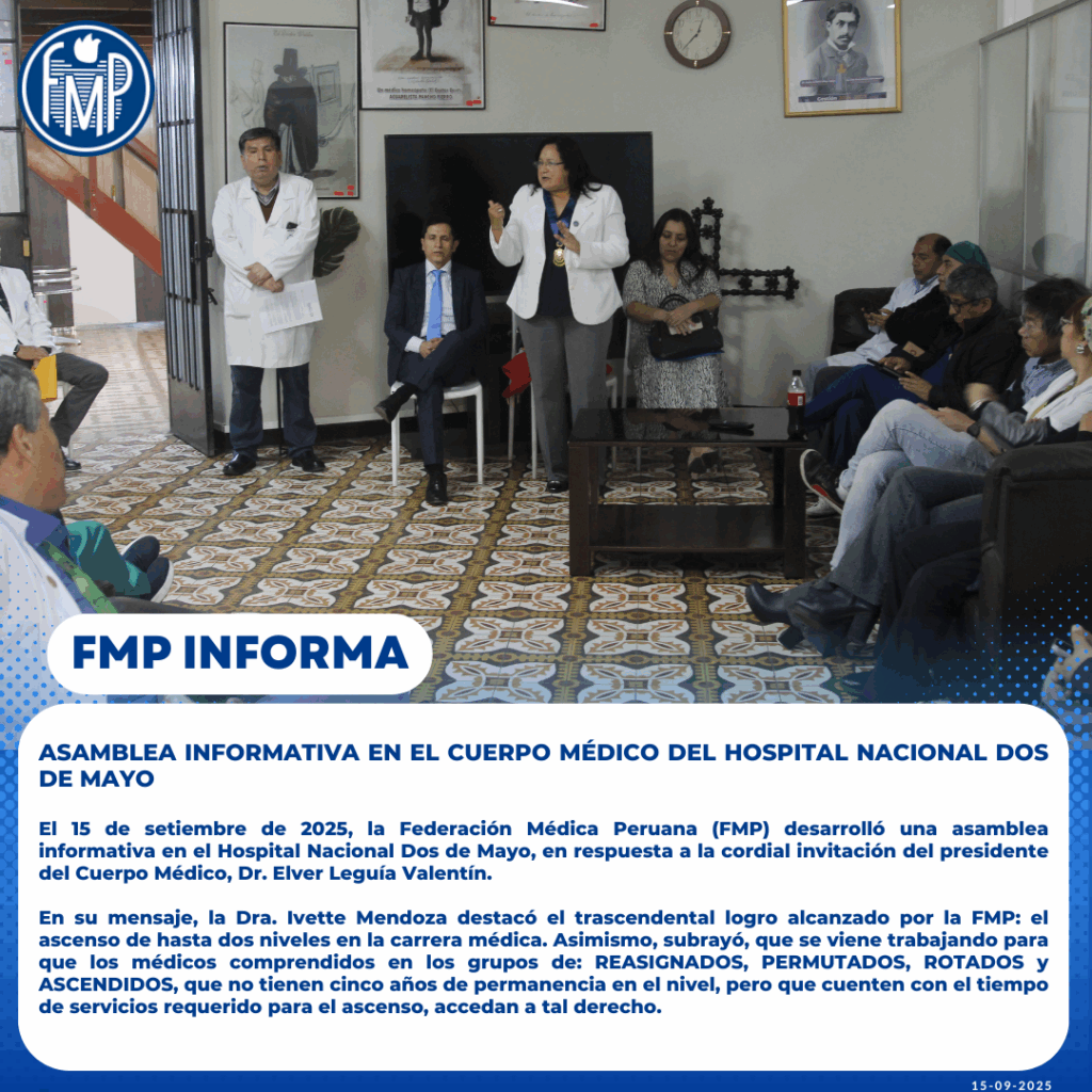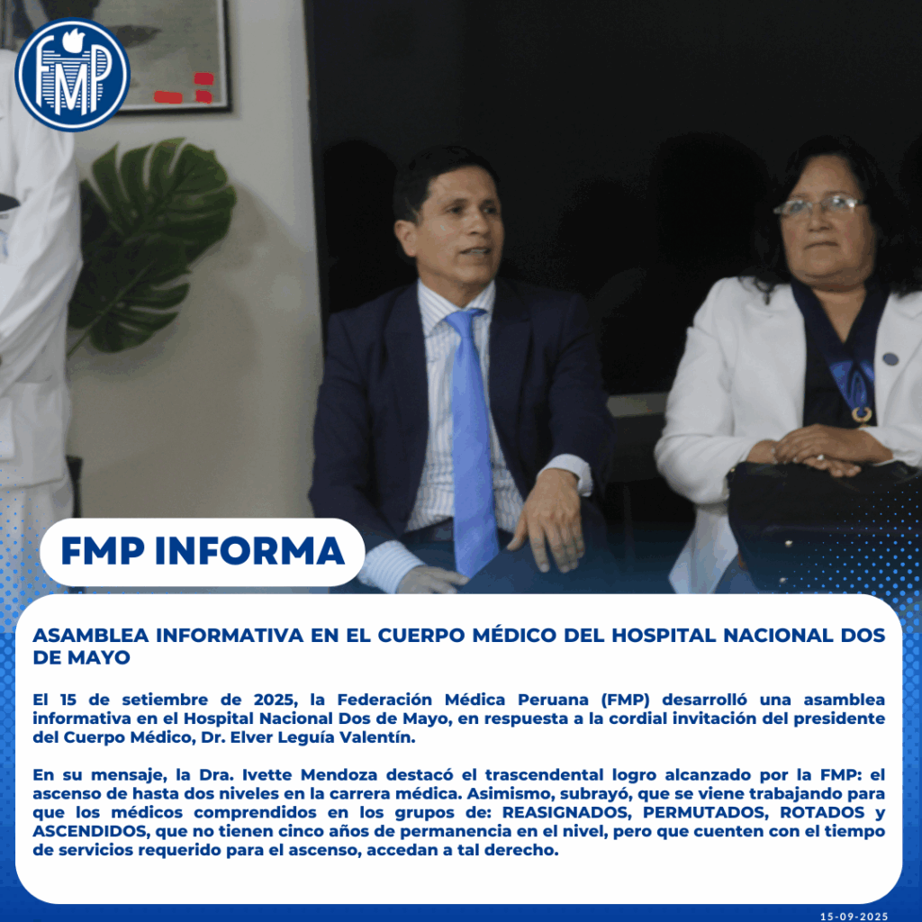 La FMP reafirmó su compromiso permanente con la defensa de los derechos de los médicos del país y garantizó que seguirá informando de manera transparente y oportuna a través de sus canales oficiales.