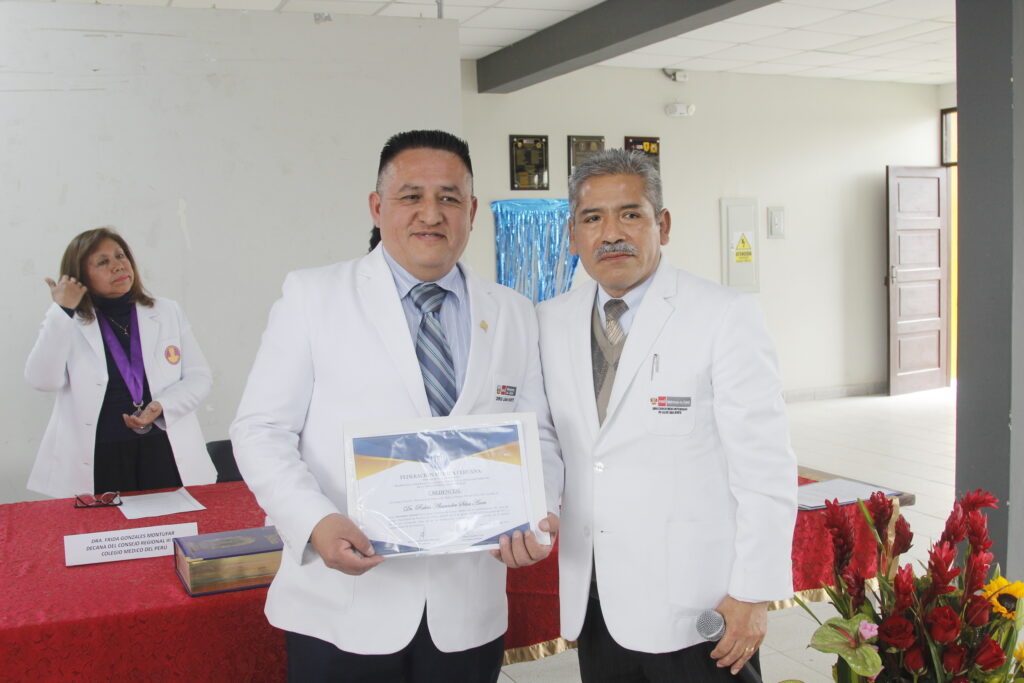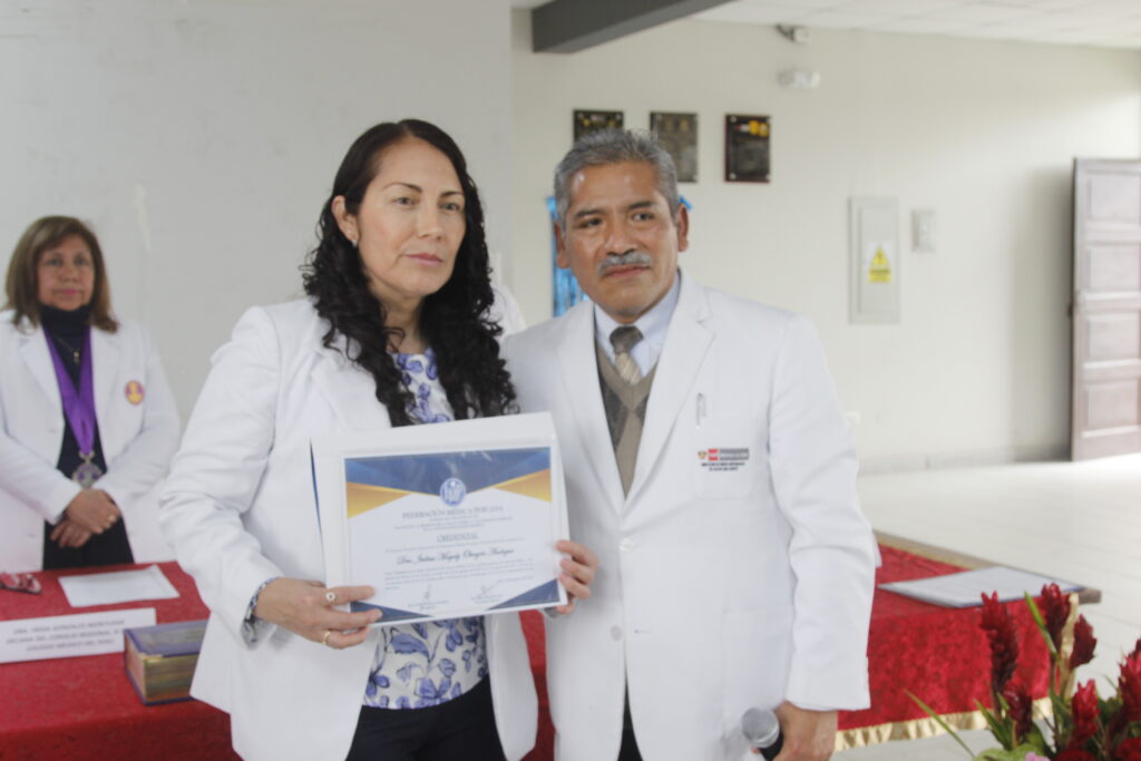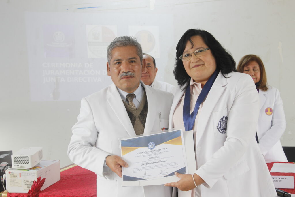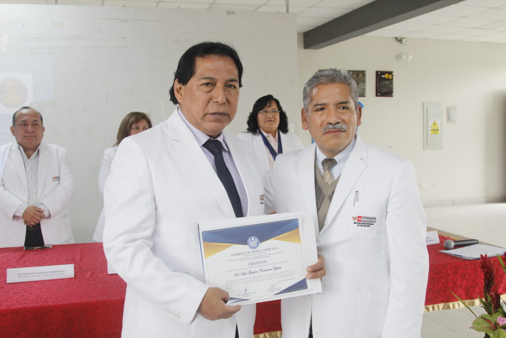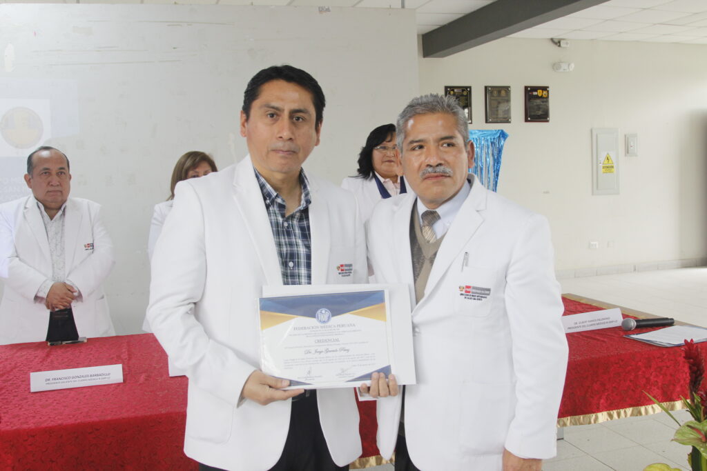 La ceremonia contó con la participación de la Dra. Zully Ruiz Vargas, Vicepresidenta de la FMP; el Dr. Héctor Bedregal Reaño, Secretario de Organización, y el Past presidente del Cuerpo Médico en mención Dr. Francisco Gonzales Barbadillo.